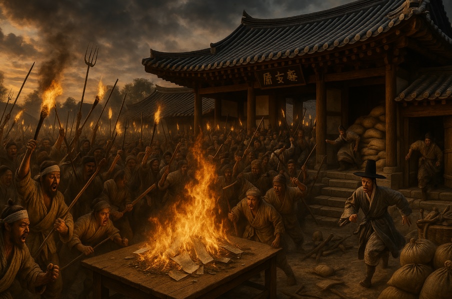 1862년은 조선 후기 농민 저항의 전환점이 된 해였다. 경상도 진주에서 시작된 대규모 민란은 전국으로 확산되며 ‘임술민란’이라 불리게 되었다. 이 민란은 단순한 지역적 폭동이 아니라, 조선 사회의 구조적 모순인 삼정의 문란(전정·군정·환곡의 부패)이 누적된 결과였다. 농민들의 분노가 폭발한 1862년 사건은 훗날 동학농민운동으로 이어지는 민중 저항의 전초전으로 평가된다.